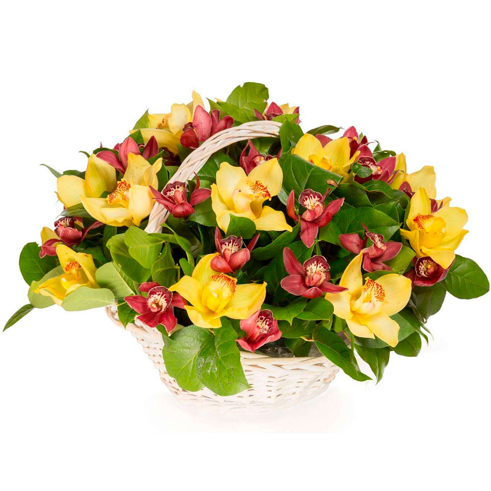 Цветы в корзинке «Орхидеи микс» с гарантией качества, цены и быстрой доставки!